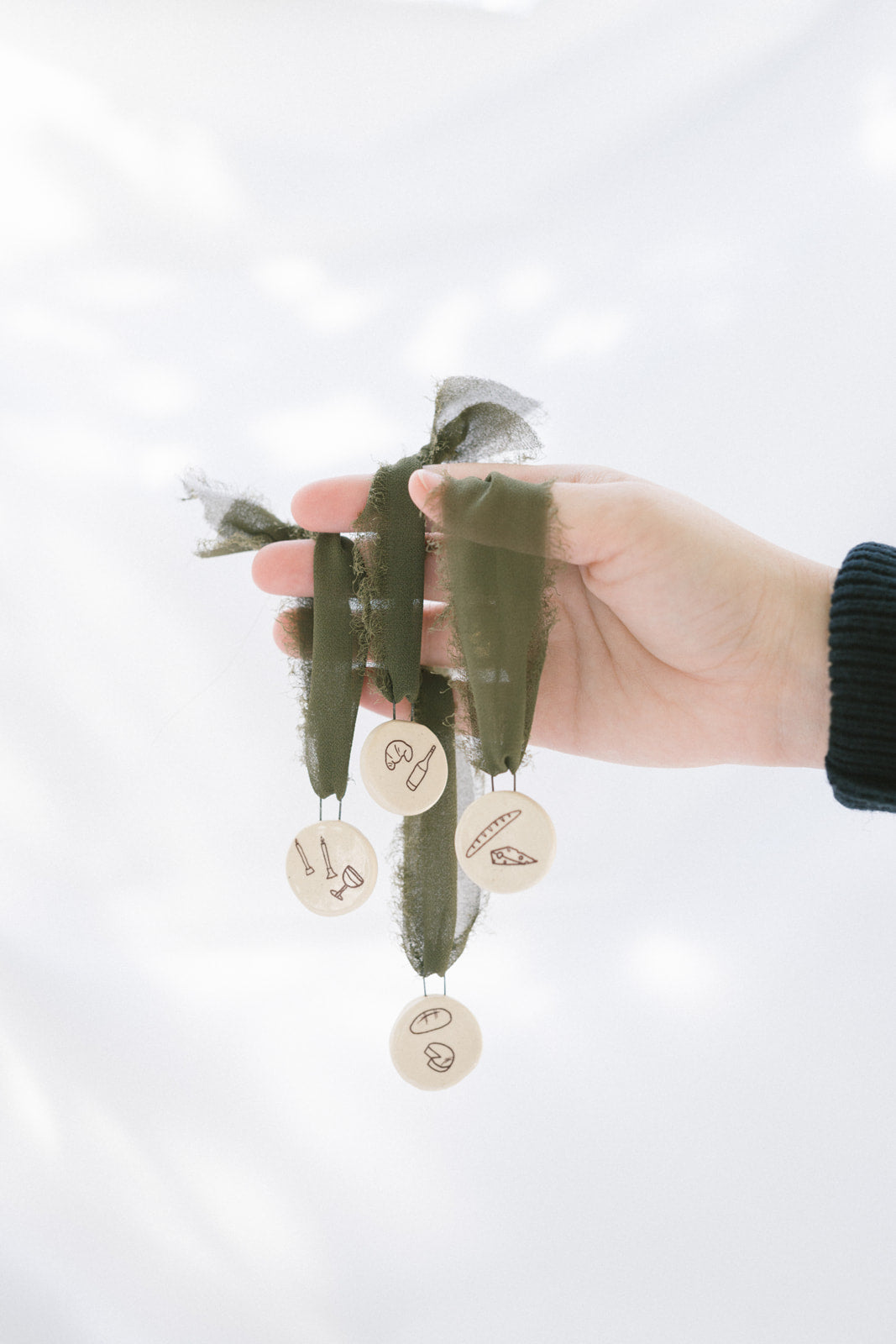 please note - ribbon may vary based on availability, but will stay in the olive green family.