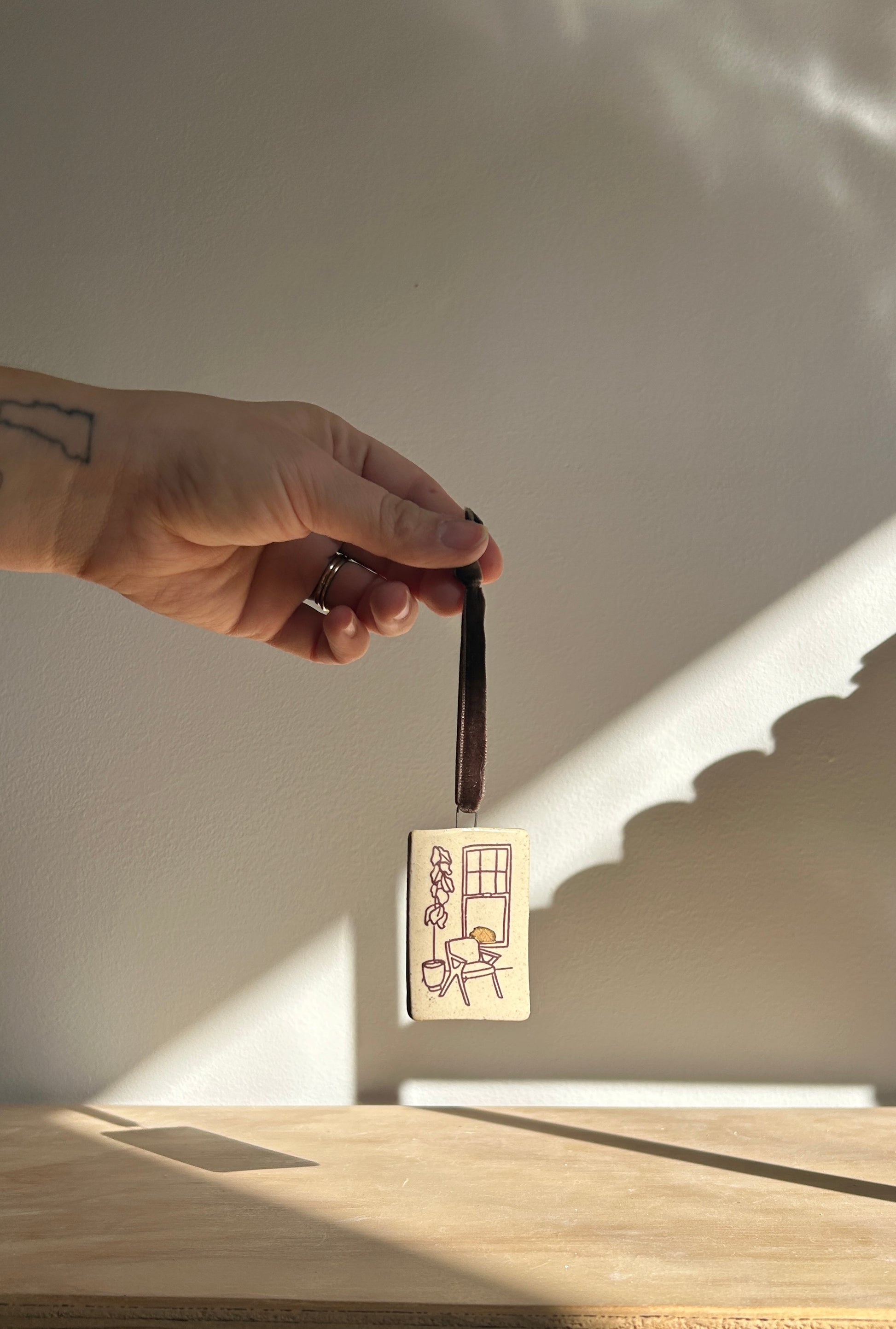 one of a kind - fiddle leave ornament w/ gold luster detailing